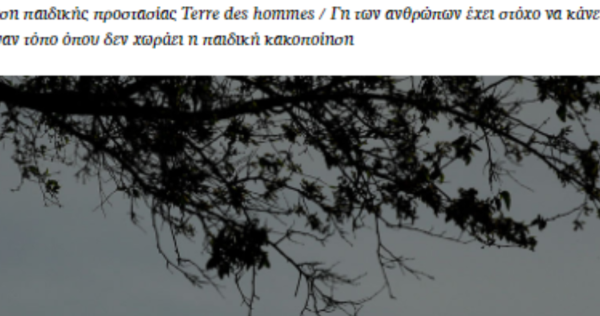 Η οργάνωση Terre des hommes Hellas έχει βάλει στόχο να κάνει την Ελλάδα έναν τόπο όπου δεν χωράει η παιδική κακοποίηση, γράφει η Kαθημερινή. Στο σχετικό άρθρο, η υπεύθυνη συνηγορίας της οργάνωσης, Μελίνα Σπαθάρη, μιλά για την νέα καμπάνια ευαισθητοποίησης της κοινής γνώμης που ξεκίνησε η οργάνωση, με την οποία επιδιώκει να πείσει τους πολίτες και τις αρχές πως ένας τέτοιος τόπος δεν είναι μαγικός, είναι αυτονόητος. Δεν θα γίνει πραγματικότητα «ως δια μαγείας» αλλά μέσα από συγκεκριμένα πρωτόκολλα, πολιτικές, εκπαίδευση και δράση υψηλών προδιαγραφών.