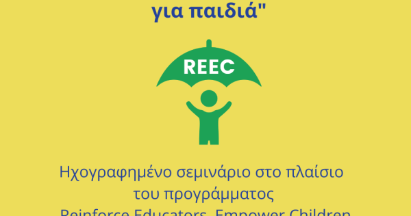 Πραγματοποιήθηκε στο πλαίσιο του προγράμματος REEC (Reinforce Educators, Empower Children) και απευθύνεται σε εκπαιδευτικούς προσχολικής και πρωτοβάθμιας εκπαίδευσης, σε κοινωνικούς επιστήμονες και επαγγελματίες που εμπλέκονται στο χώρο της Παιδικής Προστασίας. Το σεμινάριο συνοδεύεται από σχετικό υλικό που δίνεται στις εκπαιδεύσεις.